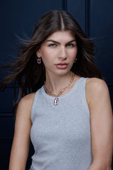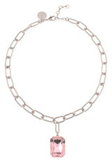 Sabrina Light Rose Crystal Necklace Silver