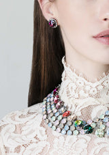 Perfectly brilliant round crystal earrings surrounded with strass.