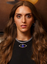 Vera Sapphire Pendant: Plated in Silver and 2.5" in width